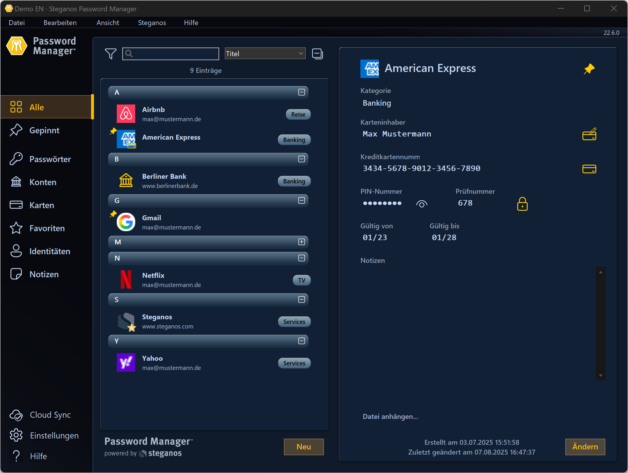 Ein komplett neues, modernes Layout für die Passwort-Manager Kategorien. Inklusive eines optionalen Kompakt-Modus für eine minimalistische Ansicht.NEU Gepinnte Einträge